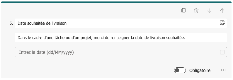 Il serait aussi possible de demander la date de début souhaité, cependant dans mon workflow, c’est un comité opérationnel qui indiquera les dates du sprint ou de la tâche associée.