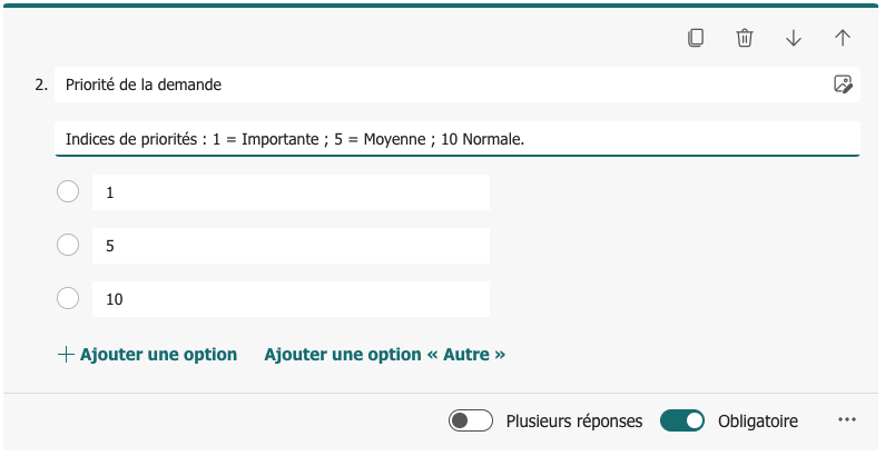 Comme évoqué précédemment, la notion de priorité dans une tâche correspond à une indice. Nous n’en proposerons que trois en indiquant la correspondance. C’est un champ obligatoire.