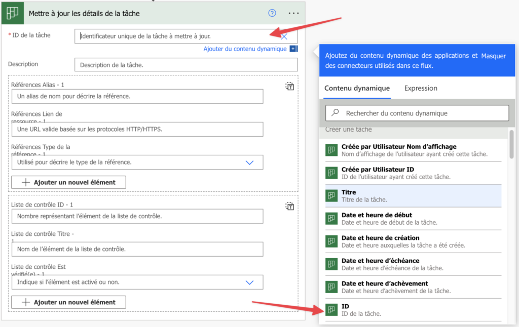 Puisque l’objectif consiste à peupler les champs d’une tâche de Planner, nous allons donc identifier les informations à compléter au terme du flux :
