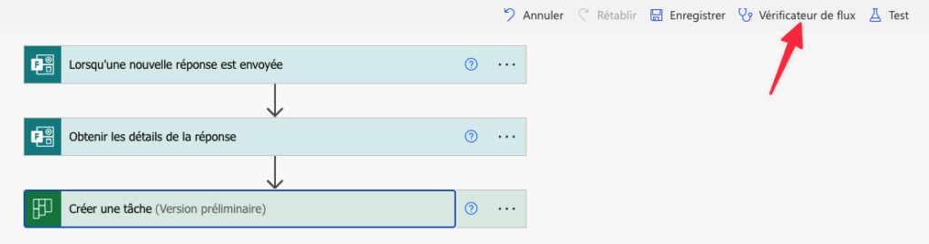 Votre diagramme de flux devrait se présenter ainsi. Cliquez sur Vérificateur de flux.