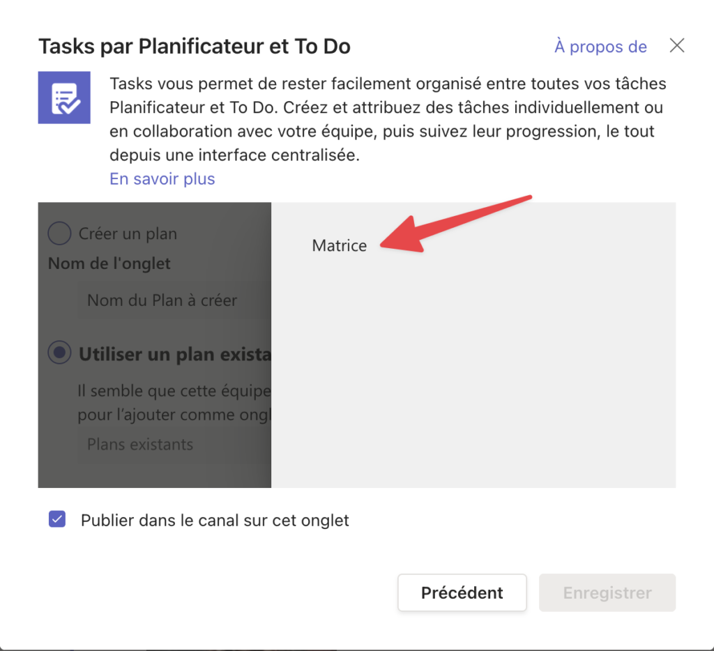Vous pouvez bien entendu utiliser un Plan existant ; dans l’illustration, je sélectionne le tableau que j’ai intitulé Matrice.