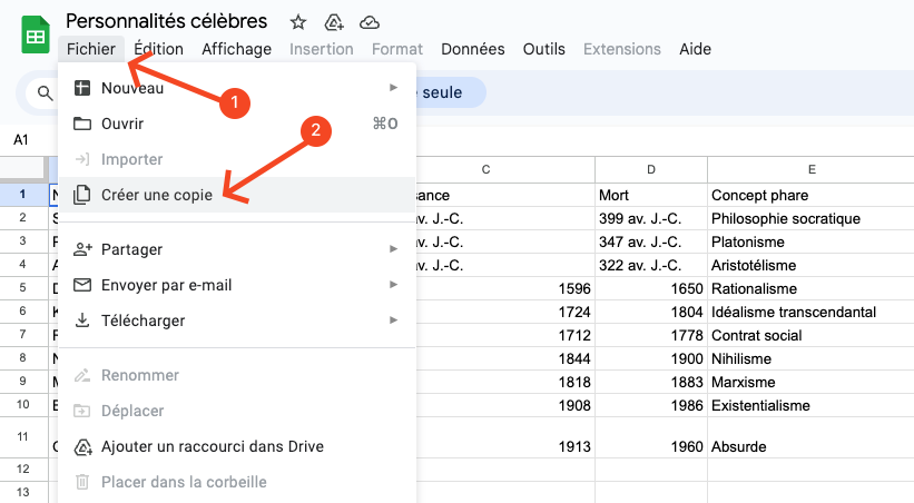 Nous allons extraire l’ensemble des données de l’onglet « Philosophe »