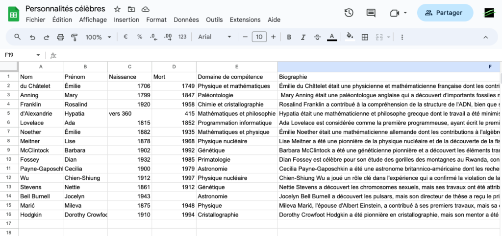 1 : Créer le google sheet, le remplir et le partager un « public »