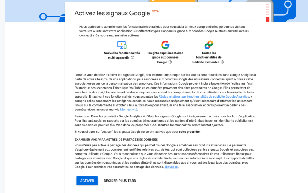 Activer les signaux Google