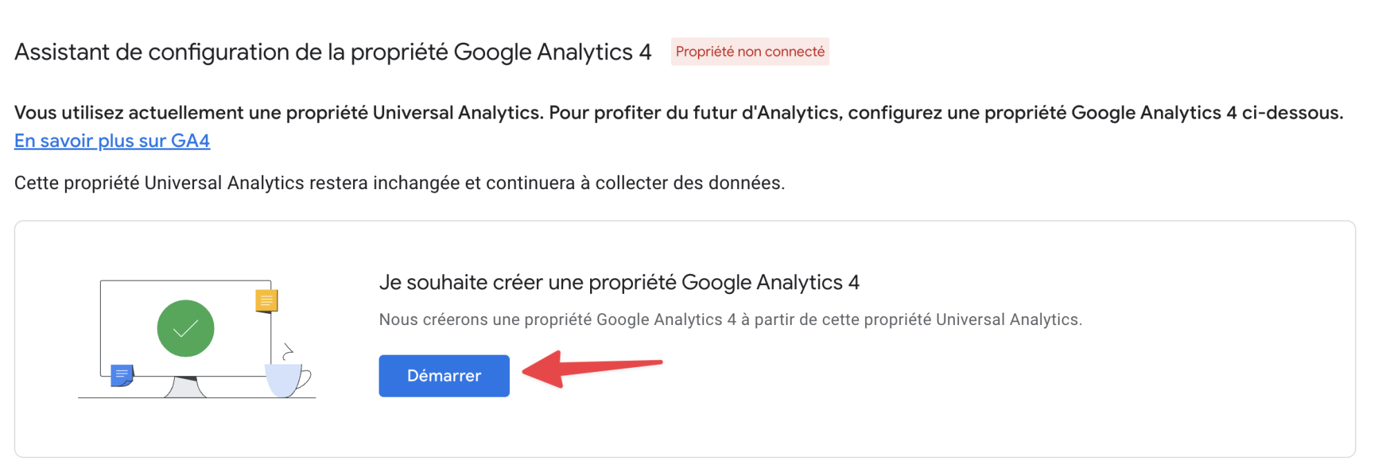 Dans l’assistant de configuration de la propriété Google Analytics 4, cliquez sur Démarrer.