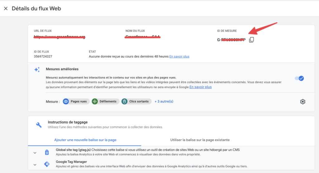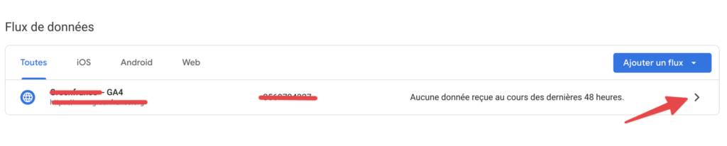 Puis accédez à la rubrique Installation de balise. Sélectionnez le flux de donnée qui aura été ajouté automatiquement.