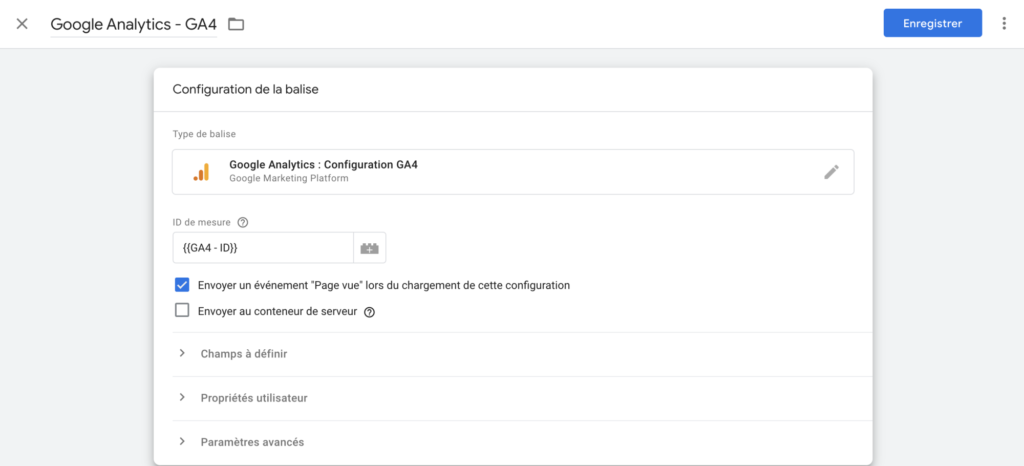 À présent, il nous faut créer la balise qui mettra en place le suivi GA4 sur le site Internet.