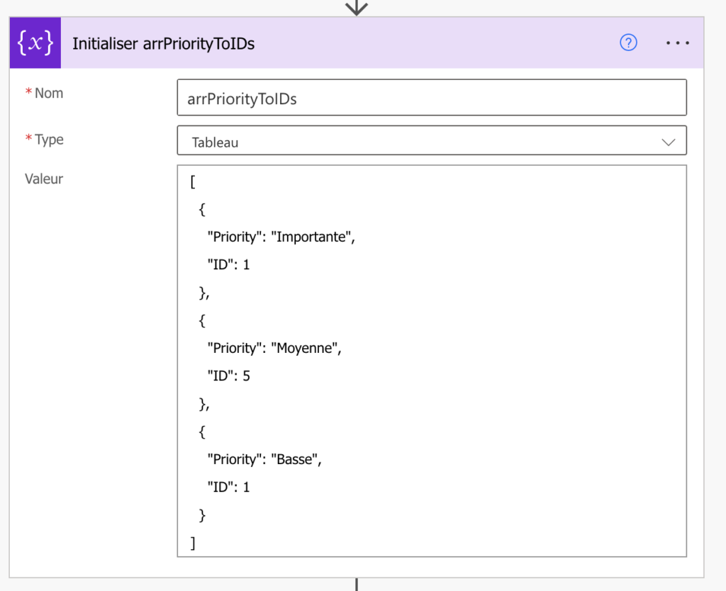 Renommez l’action en Initialiser arrPriorityToIDs.